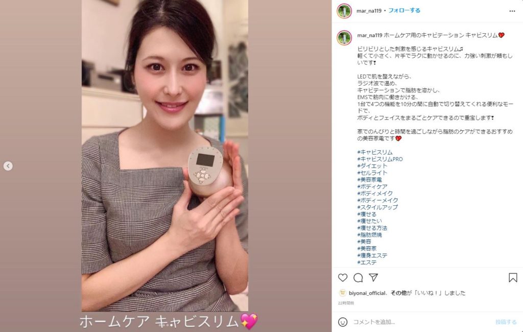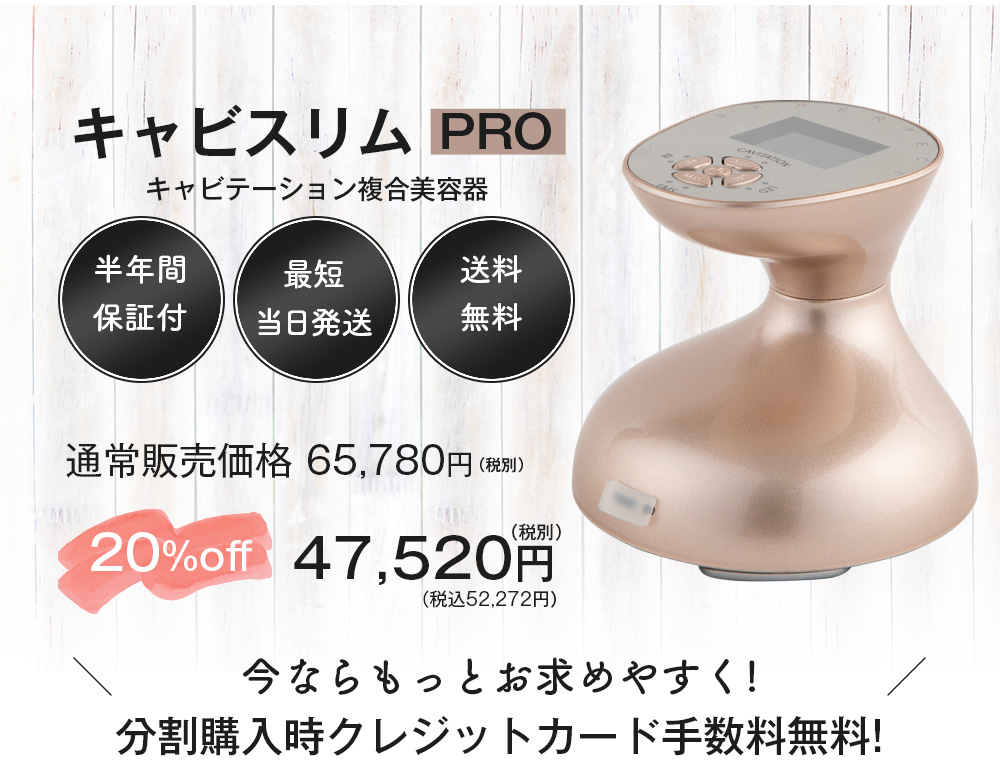 自宅用キャビテーションで全身対応しているマシン・・・しかもEMSと美肌ケアまでついているキャビスリムPRO。本当にオススメです。